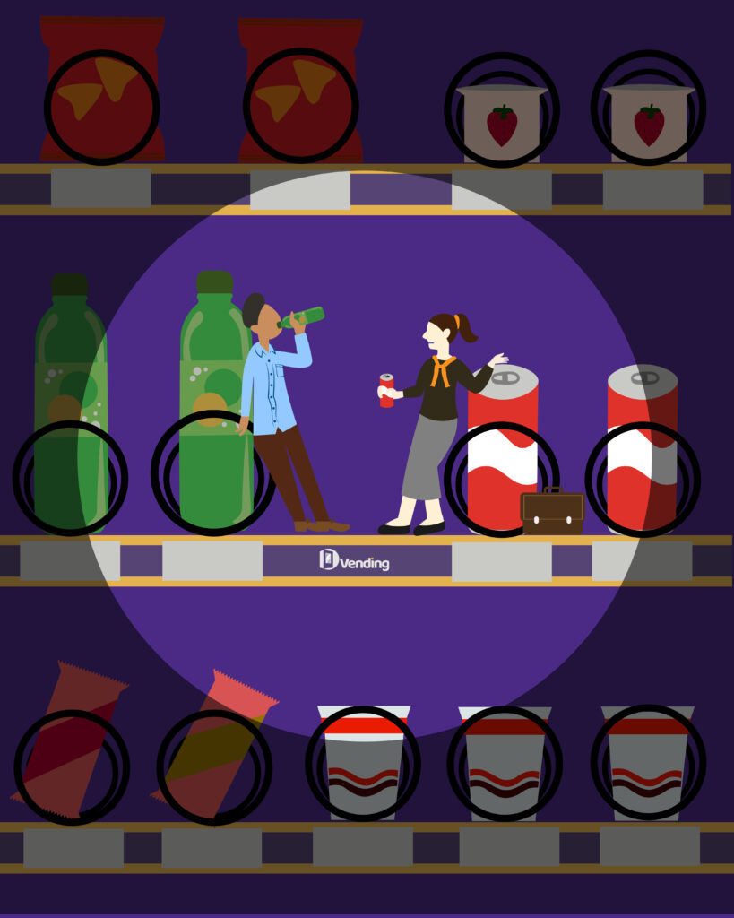 Capacidad máxima de 821 latas y hasta 360 botellas de PET, la máquina puede almacenar hasta 10 selecciones